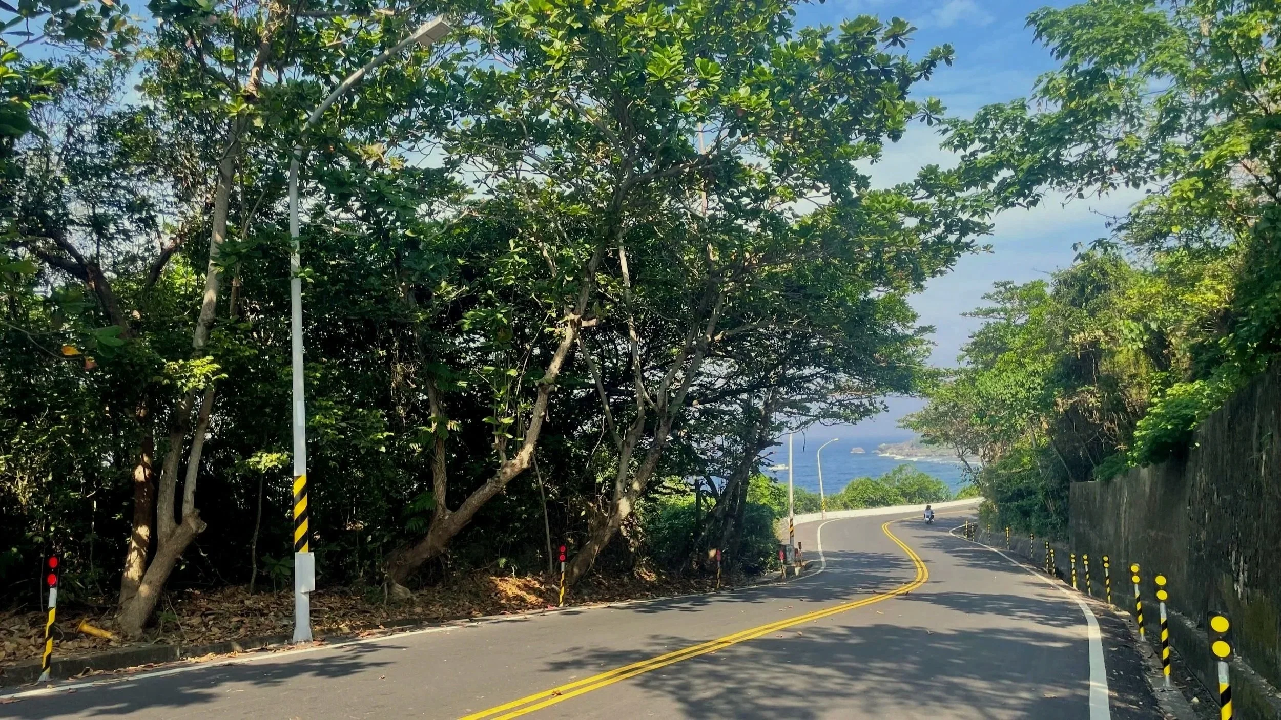 Liuqiu Island ist zwar nicht sehr groß, aber es gibt einiges zu tun und auch zu besichtigen. Als erstes fahren Blümchen und ich zur Unterkunft, die etwas außerhalb des Hauptortes liegt. Dabei lerne ich die Straßen der Insel kennen. Und was ich sehe, gefällt mir schonmal ganz gut! Das Meer ist logischerweise nie fern und alles ist entspannt, einfach schönstes Rollerfahren!