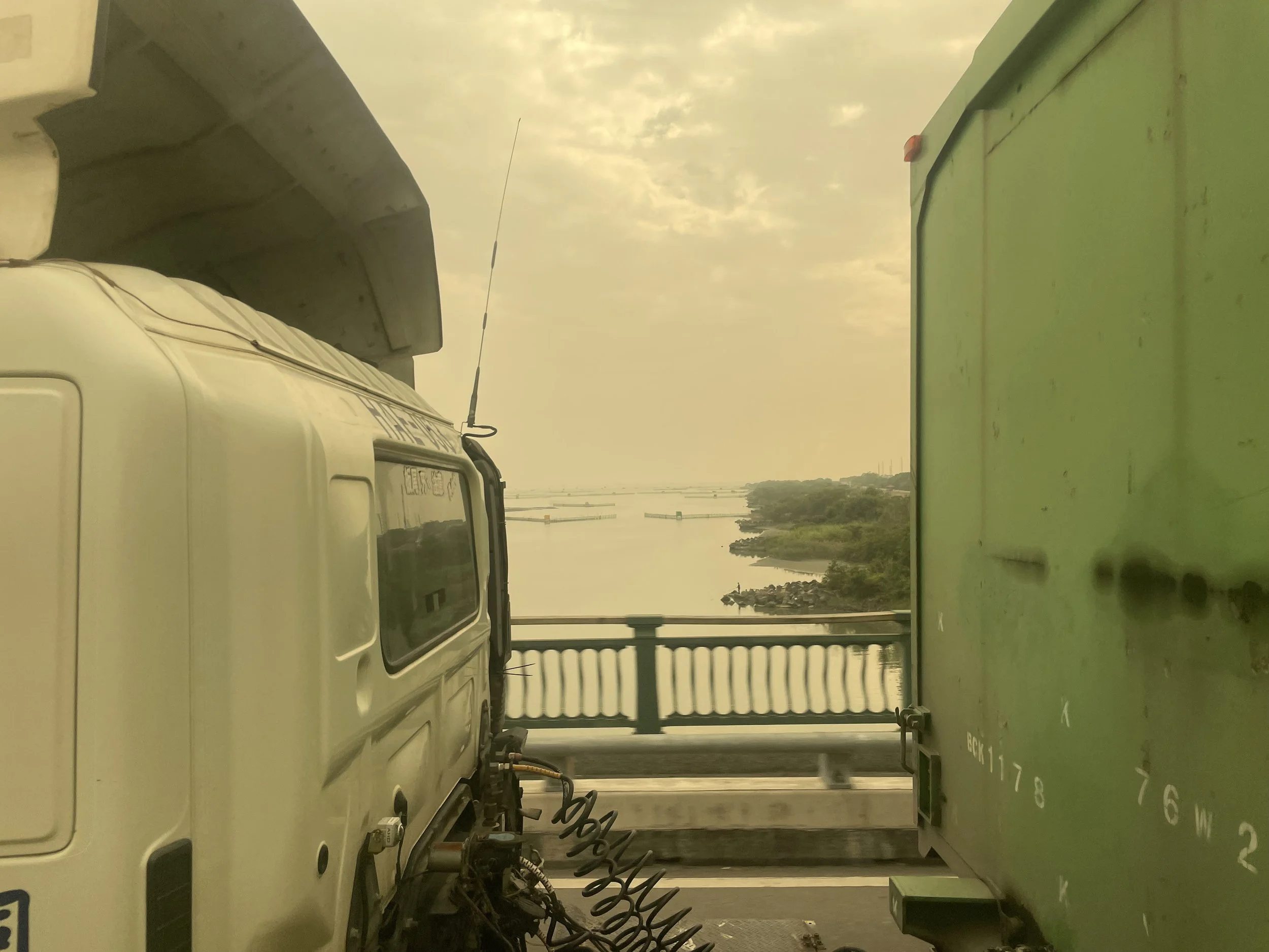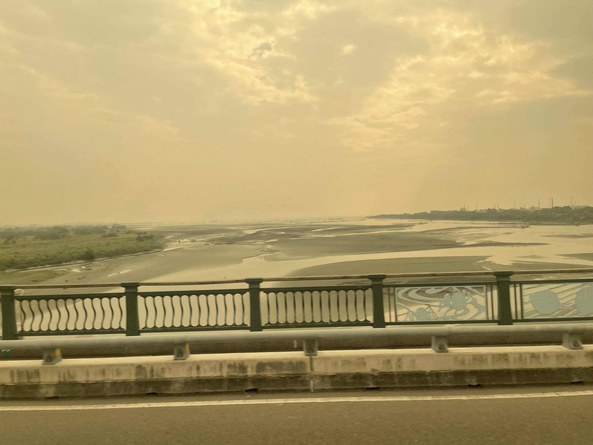 Als sich die Häuser und Industrieanlagen schließlich etwas lichten und den Blick von der Schnellstraße freigeben, auf den Donggang River und die Westküste, da merke ich, dass schmieriger Smog alles in einen gelblich-graue Suppe taucht. In der Stadt war mir das eigentlich gar nicht so sehr aufgefallen.