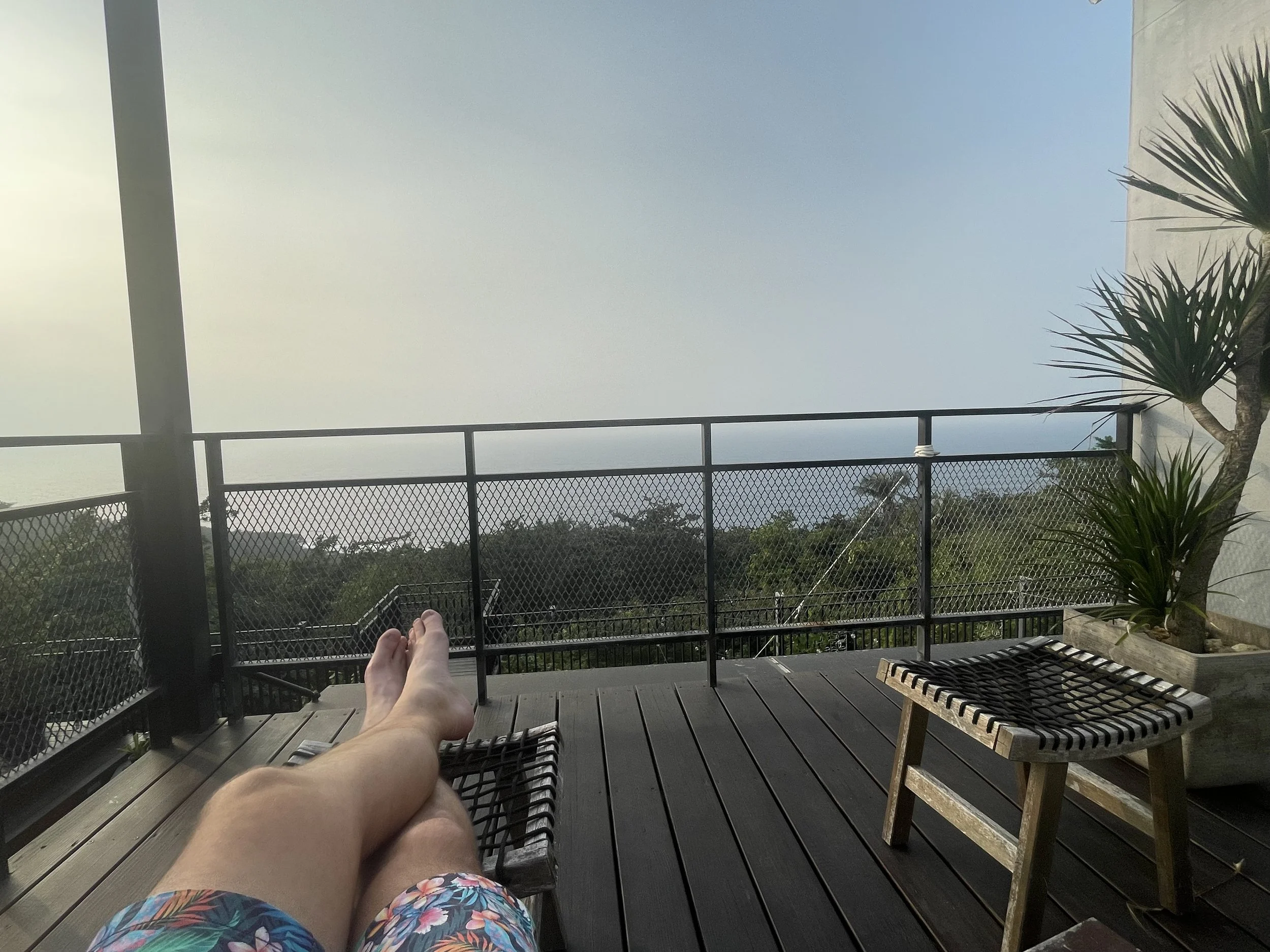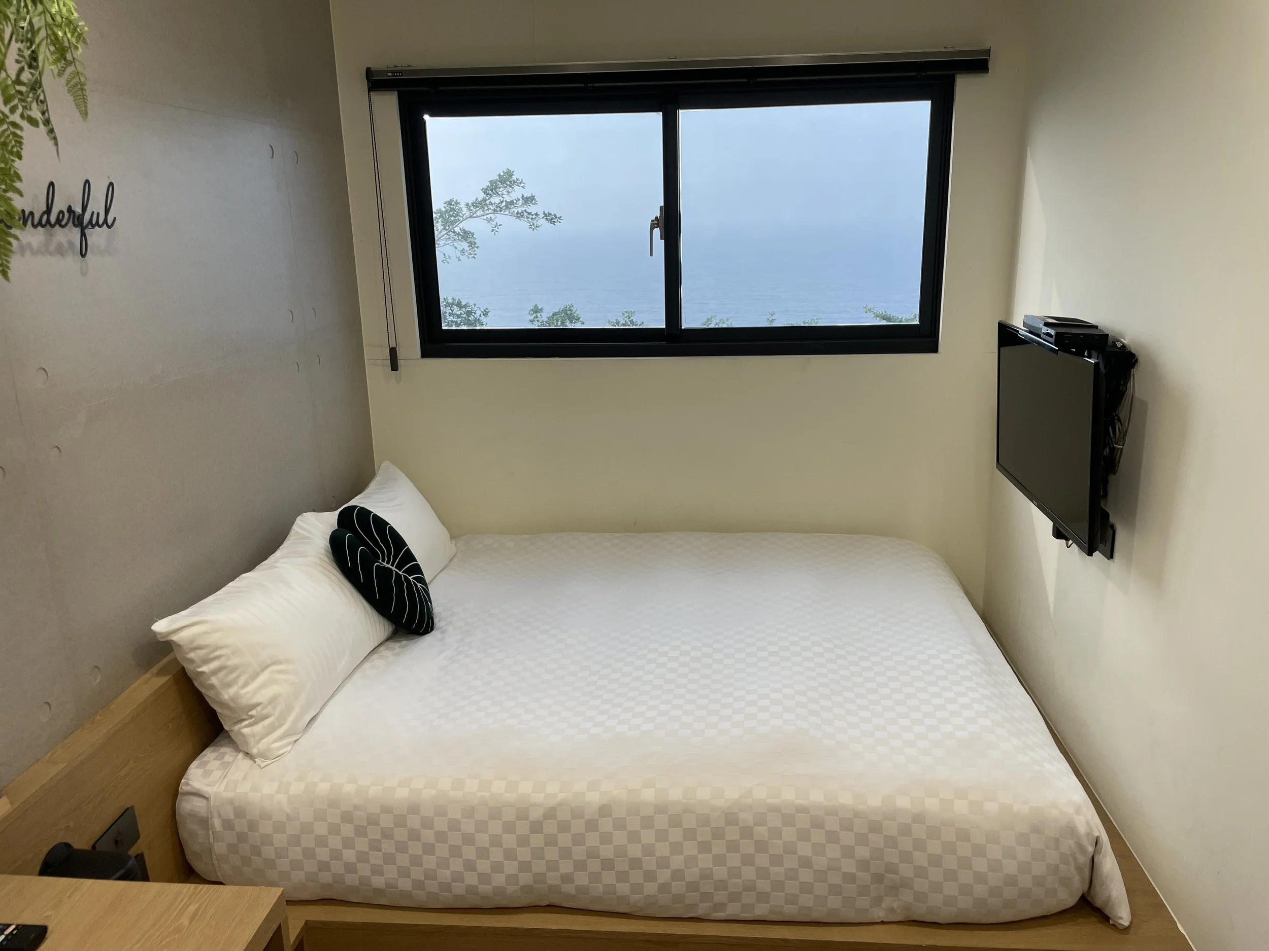 Meine Unterkunft besteht aus umgebauten Industriecontainern. Das klingt schlimmer als es ist, ich fühle mich eigentlich ganz wohl, auch wenn das Zimmer sehr klein ist. Die Aussicht ist aber umso besser und tagsüber möchte ich ja sowieso unterwegs sein auf der Insel. Die Lage der Unterkunft ist relativ zentral in der Inselmitte, aber das ist bei der überschaubaren Größe von Liuqiu eigentlich zweitrangig.