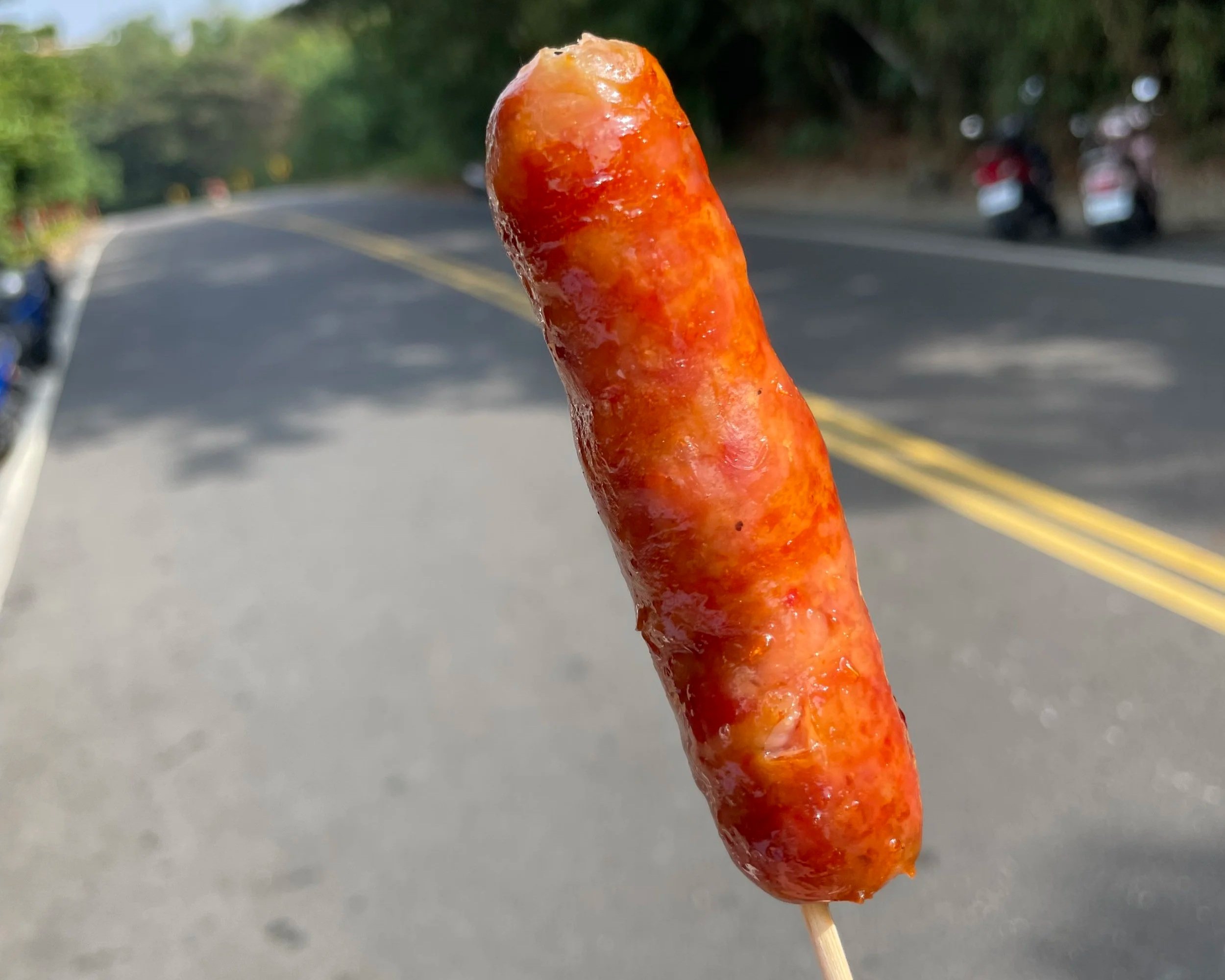 Zwischen den Ausflügen gönne ich mir lokale Spezialitäten, wie etwa den frittierten Fliegenden Fisch (sehr lecker!) und eine chinesisch-süßlich-würzige Wurst, die ich auch zuhause gerne mal auf den Grill schmeißen möchte. Sie wird "Feiyu luan xiangchang" genannt, was übersetzt bedeutet: „Wurst mit fliegendem Fischrogen“.