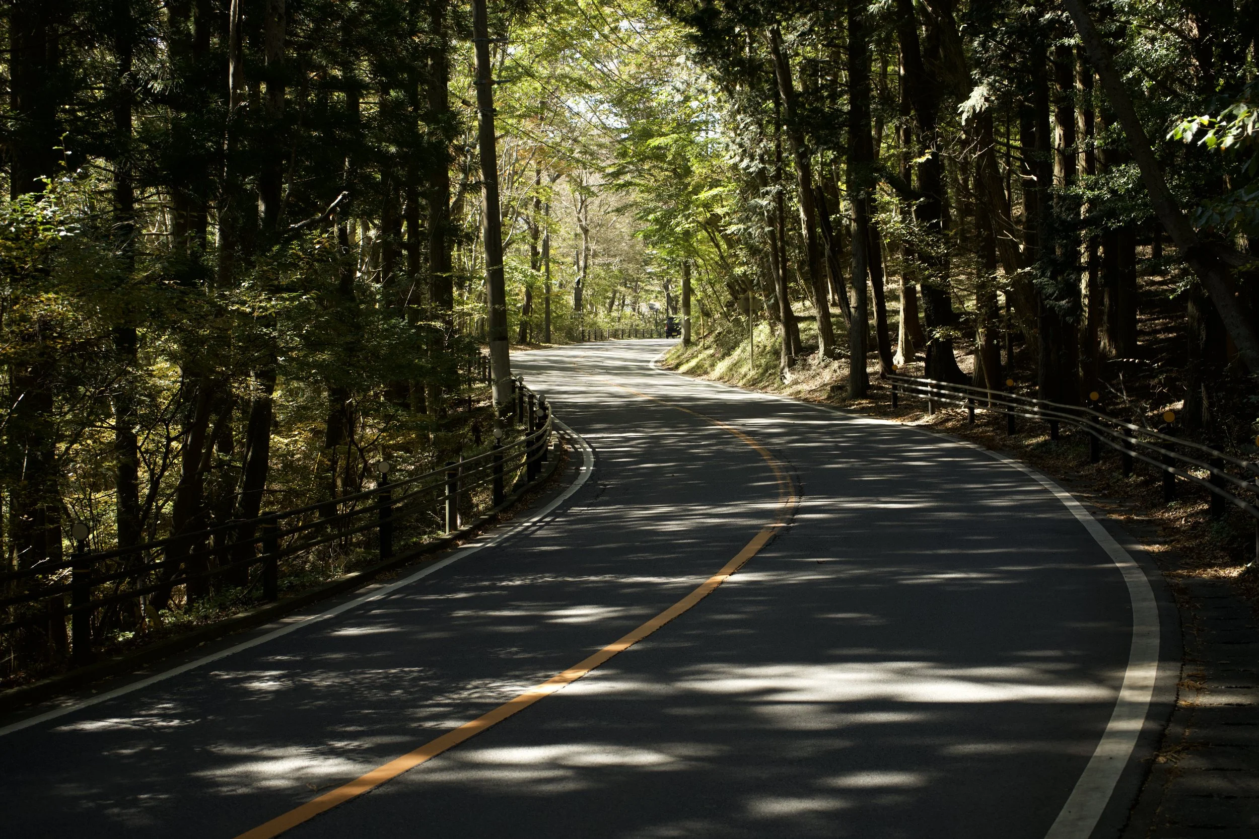 Darauf freue ich mich sehr! Die ersten Kilometer geht es nach Norden, raus aus der Stadt. Von Odawara mit seinen engen Gassen schlängele ich mich hoch über ein paar Bergstraßen, schließlich bis zum Mikuni-tōge, einem kleinen Bergpass, der auf der anderen Seite der Hügelreihe erst durch bewaldetes Gebiet führt, dann aber durch weites Grasland, und schließlich bis hinunter führt zum Yamanaka-See ("See in den Bergen").