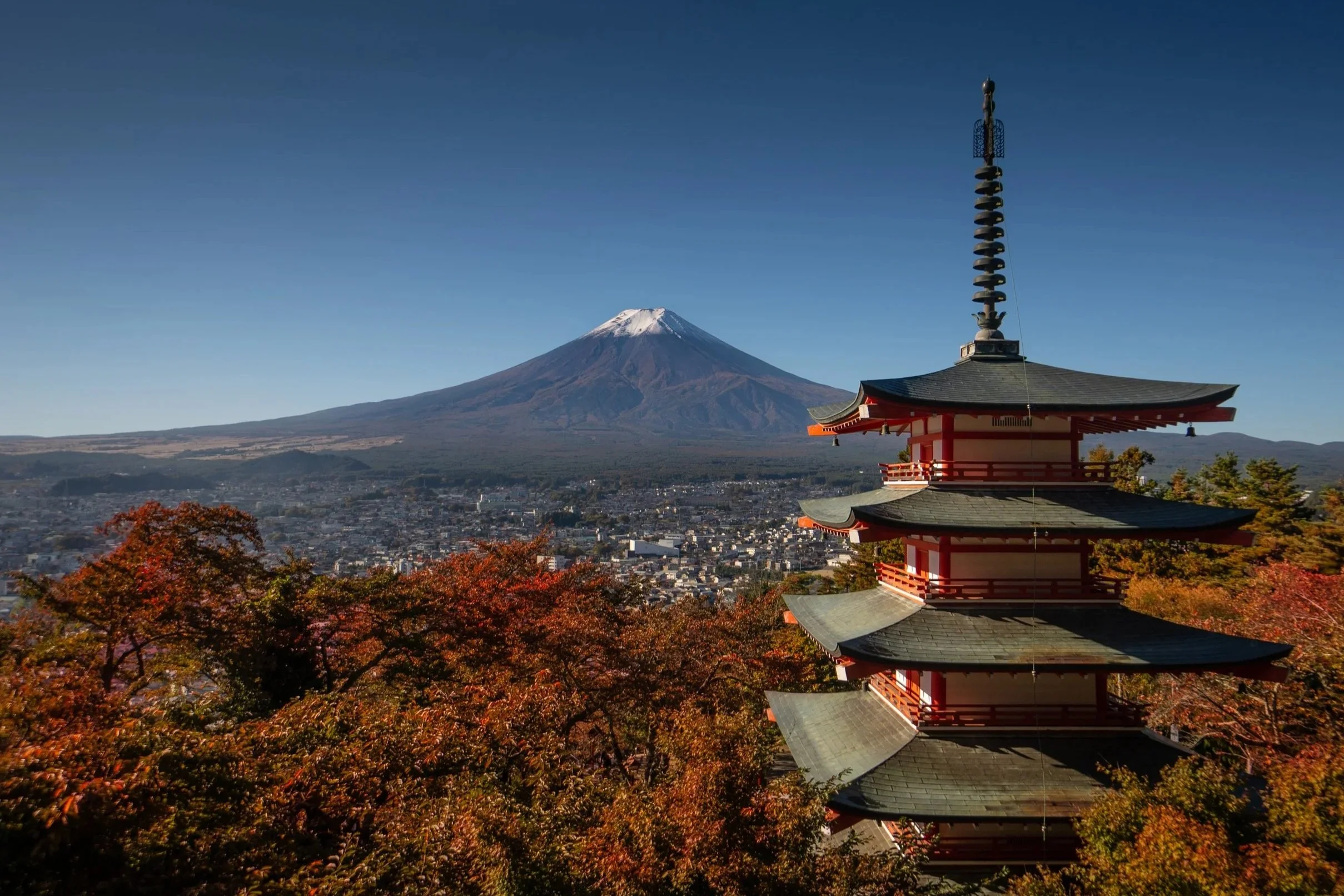 Schließlich verschlägt es mich auch in die Kleinstadt Fujiyoshida. Hier liegt der Arakurayama Sengen Park, und in dem steht die Chureito Pagoda. Der Name mag nicht so bekannt sein, das Foto aber kennt wohl jeder. Es ist das wahrscheinlich meistfotografierte Bild von ganz Japan. Ein klassisches Instagram-Motiv.