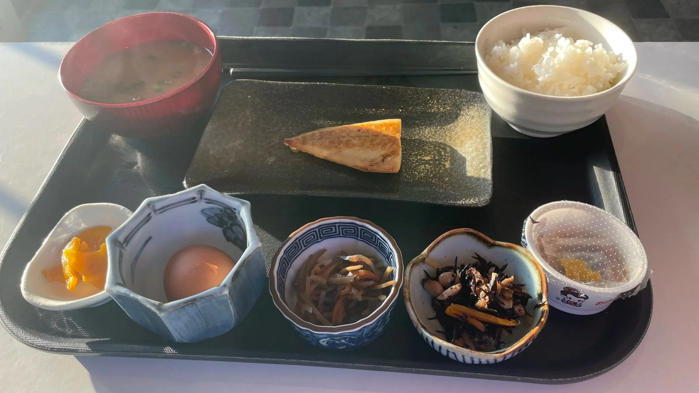 Als ich früh morgens im Futon-Bett meine Augen aufschlage, ahne ich noch nicht, dass der Hai-Tauchgang nicht die erste Prüfung des Tages sein würde. Nein, sondern das japanische Frühstück! Traditionelles Frühstück: Reis, Gegrillter Fisch, Miso-Suppe, eingelegtes Gemüse. Und schon wieder dieses rohe Ei!