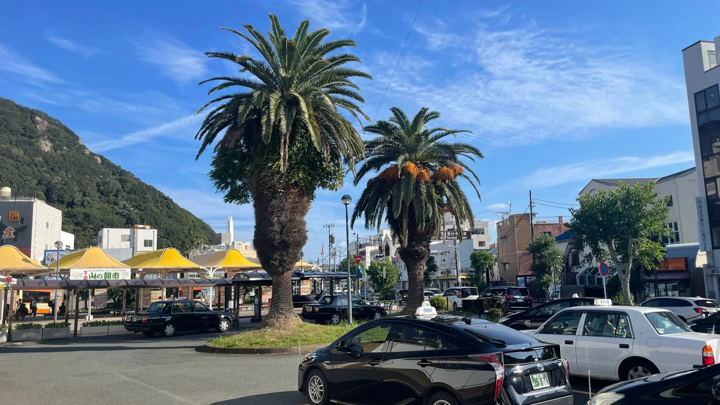 Willkommen in Izukyū-Shimoda! Palmen statt Fuji-Schneegipfel.