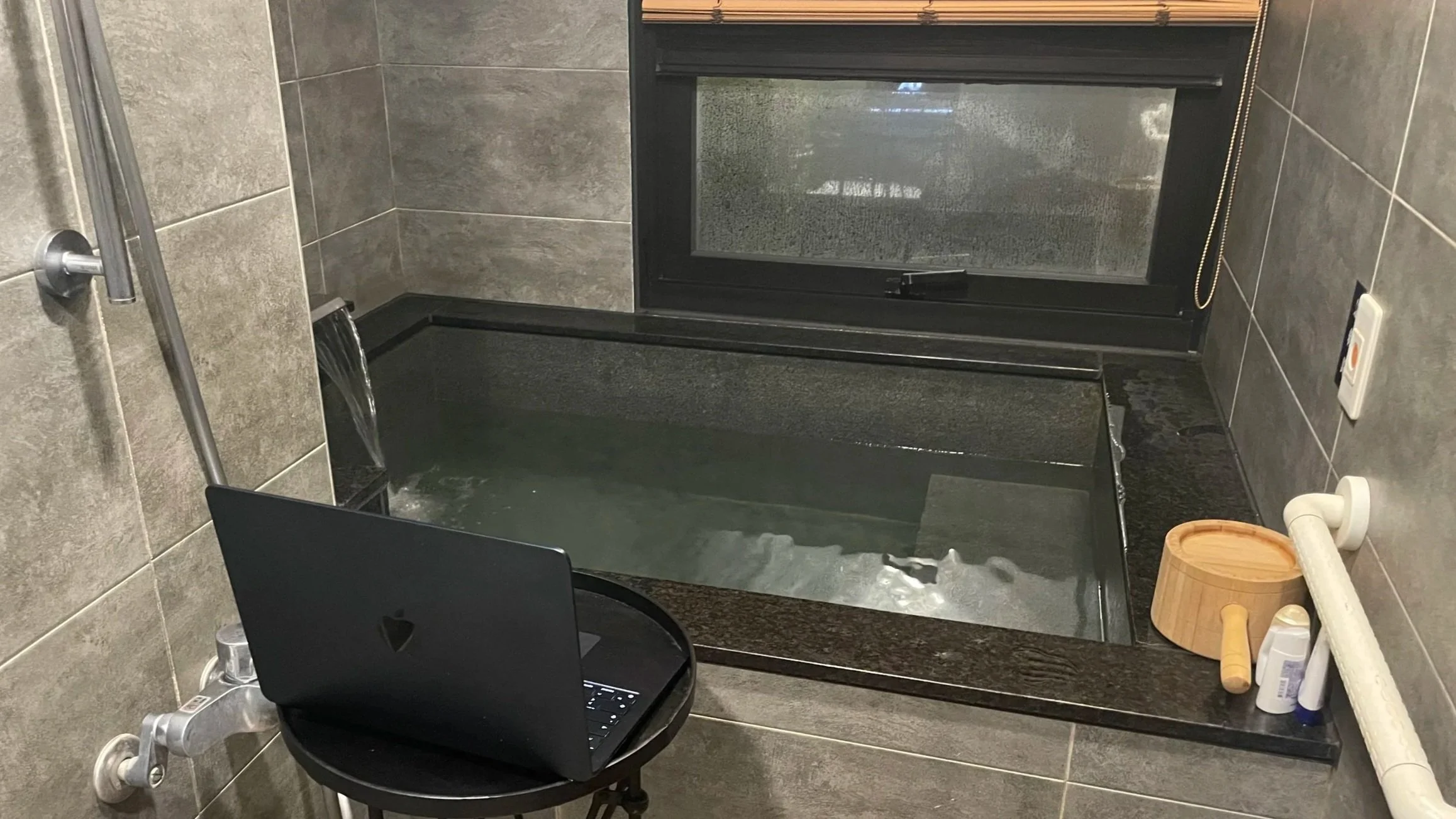 Und es ist wirklich mehr als entspannend - nachdem ich die richtige Funktion der verschiedenen Wasserzuführungen entschlüsselt habe. Ich entscheide mich für die "Original Suppe" und werde nicht enttäuscht! Netflix im Privat-Onsen. Das Leben ist schön!Hinweisschild am Wasserhahn. Was das wohl bedeutet?