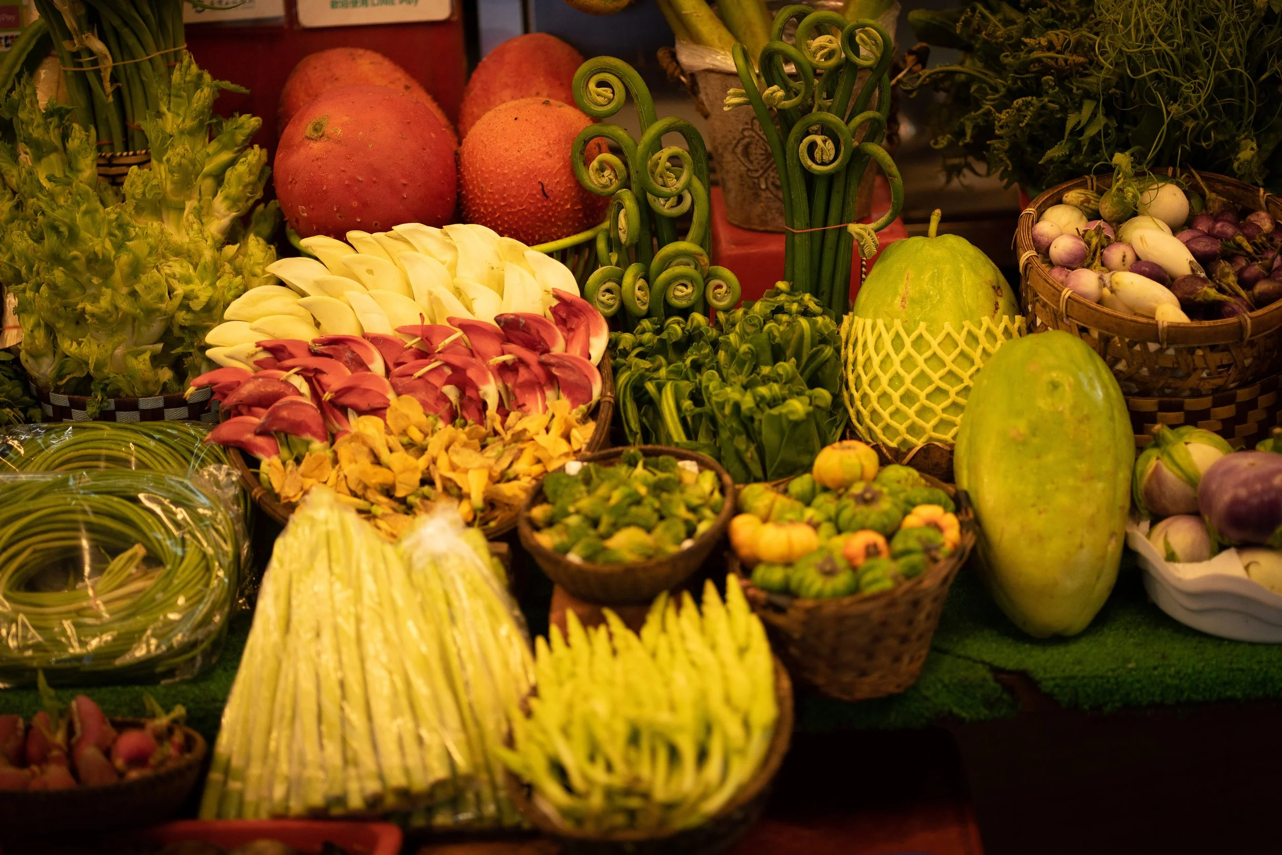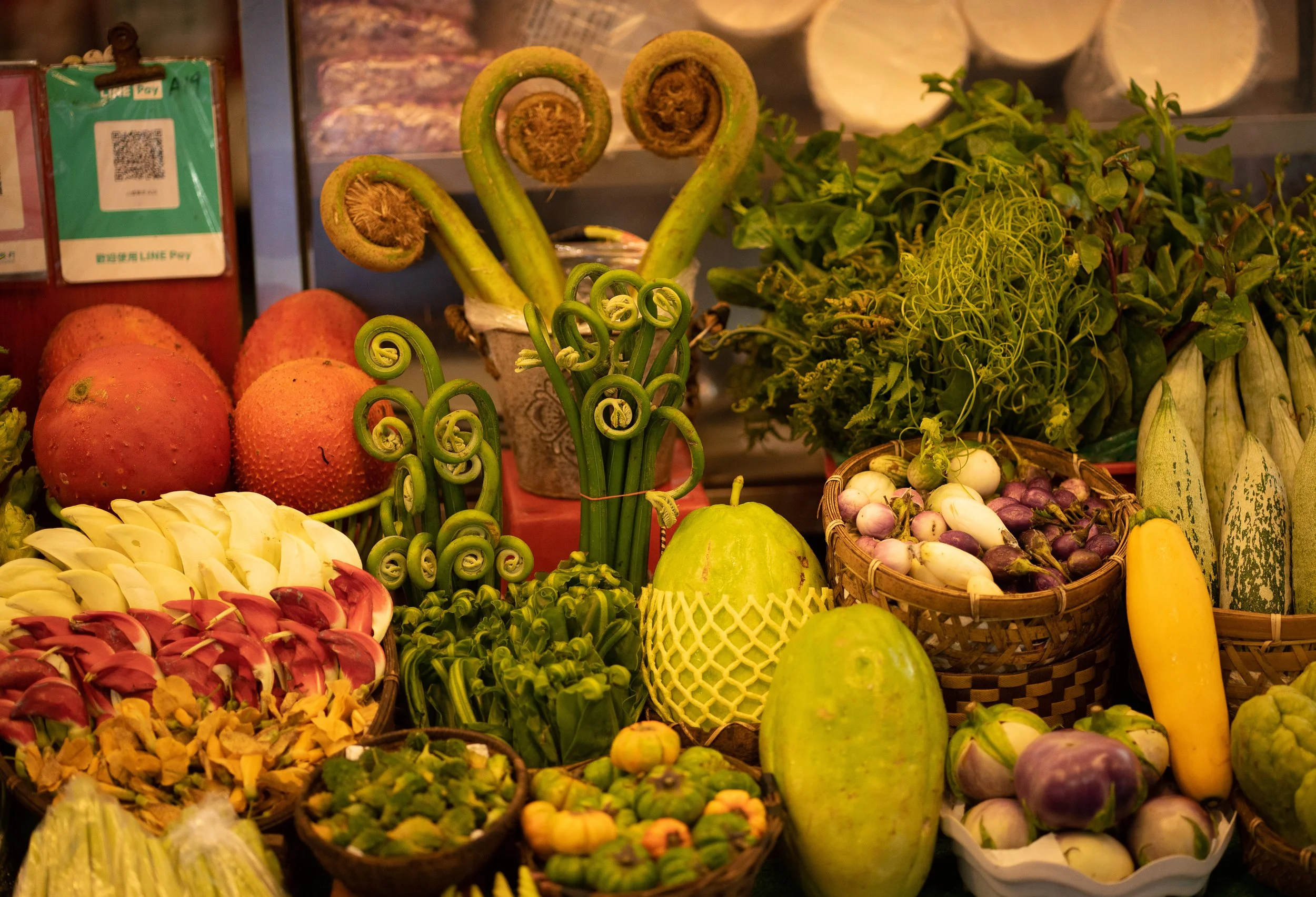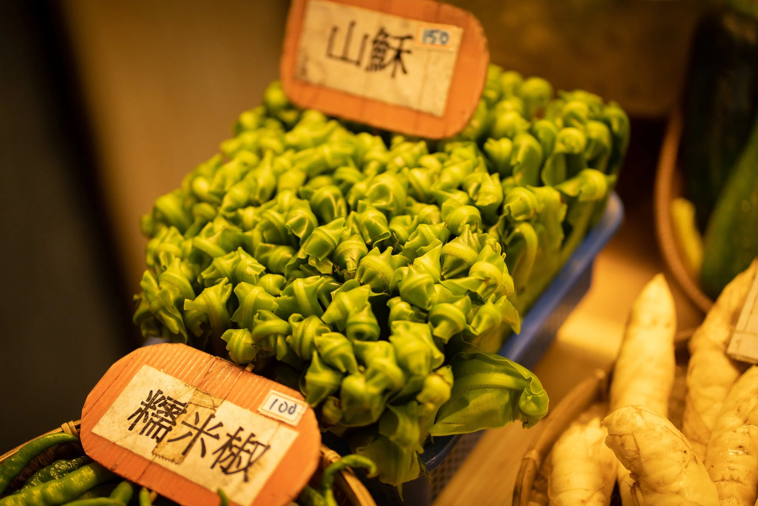 Taiwans Nachtmärkte gelten auch als Wiege des Street Foods. Viele landesweit bekannte Gerichte stammen von hier. Ich schlendere umher und staune nicht schlecht - viele der Gemüsesorten habe ich noch nie gesehen. Und die meisten Stände präsentieren die Waren wirklich spektakulär. Es ist schon ein Genuss, selbst wenn man erstmal nur herum schaut.…okay, also DAS sieht aber schon etwas merkwürdig aus. Was das wohl ist??