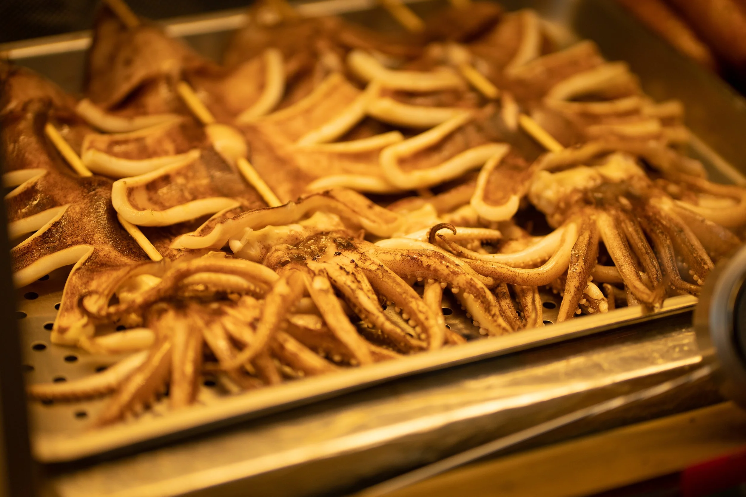 Und wann sollte man die Fotokamera lieber aus lassen?Das Fotografieren von wildfremden Menschen, "Street Photography", ist eine weitere Gratwanderung, eine Entscheidung, die ich auf meiner Reise häufig abwäge. Auf meiner nächsten Station, dem Huaxi Night Market, nur wenige Meter weiter, habe ich etwas weniger Hemmungen, als Gläubige im Tempel zu fotografieren. Es werden hier von den Besuchern viele Fotos und Videos gemacht und auch ich mache ein paar Schnappschüsse, bevor ich mir ein paar gegrillte Taiwanesische Spieße gönne, mit Tintenfisch, Rindersteak und anderen lokalen Leckereien. Ich liebe den Huaxi Street Night Market!Satt und erfüllt lasse ich den letzten Abend in einer hervorragenden Gin Tonic Bar ausklingen.