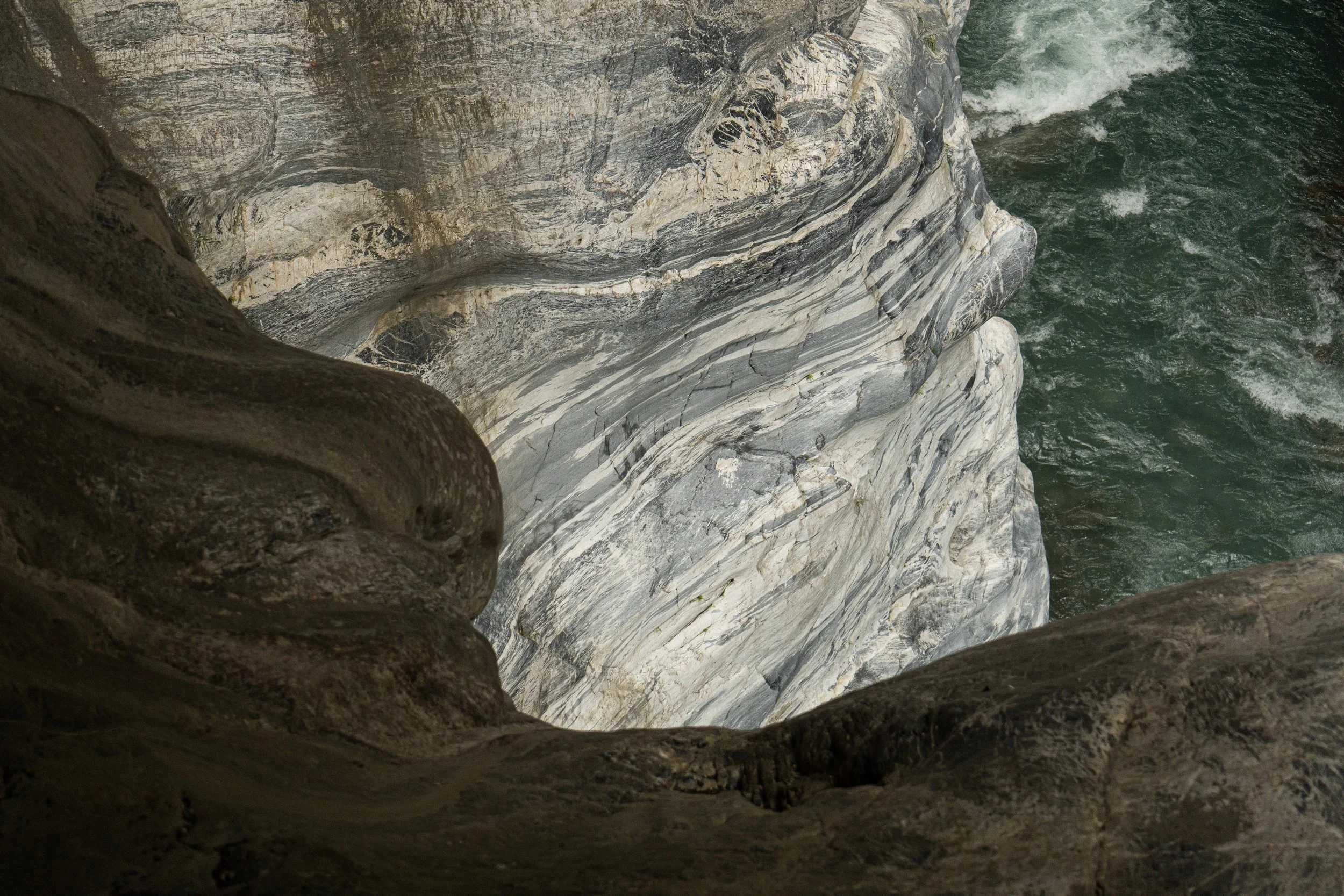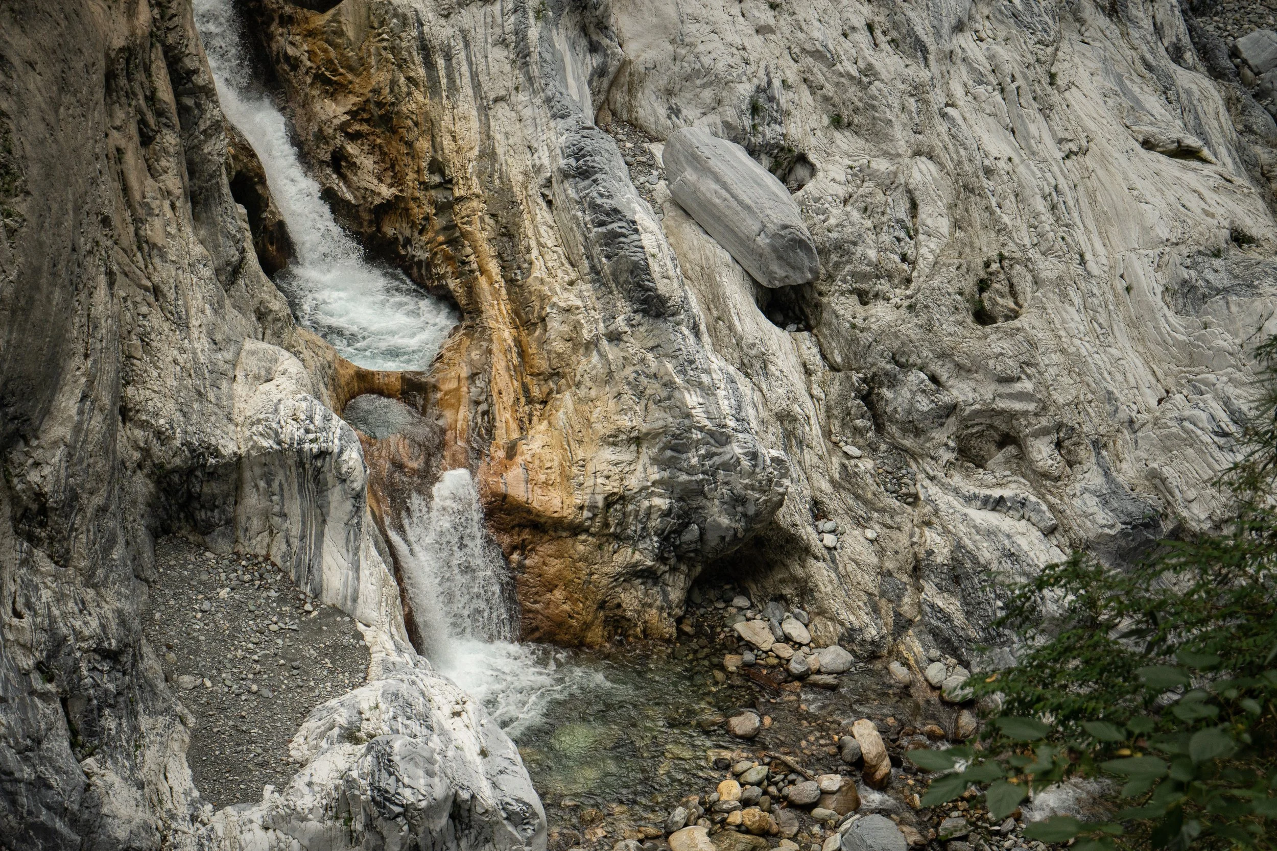 Zwei Learnings habe ich sofort: Jetzt wird es noch spektakulärer, aber leider ist das hier kein natürlicher Trail, sondern eine ehemalige Straße, die nun von Ausflüglern zu Fuß genutzt wird. Atmosphärisch entsprechend nicht ganz so wertvoll. Macht aber nichts, ich bin trotzdem happy und schieße ein paar Fotos, bestaune die Laune der Natur, die sich hier durch verschiedene Formen und Farben der Marmorsteilwände ausdrückt.