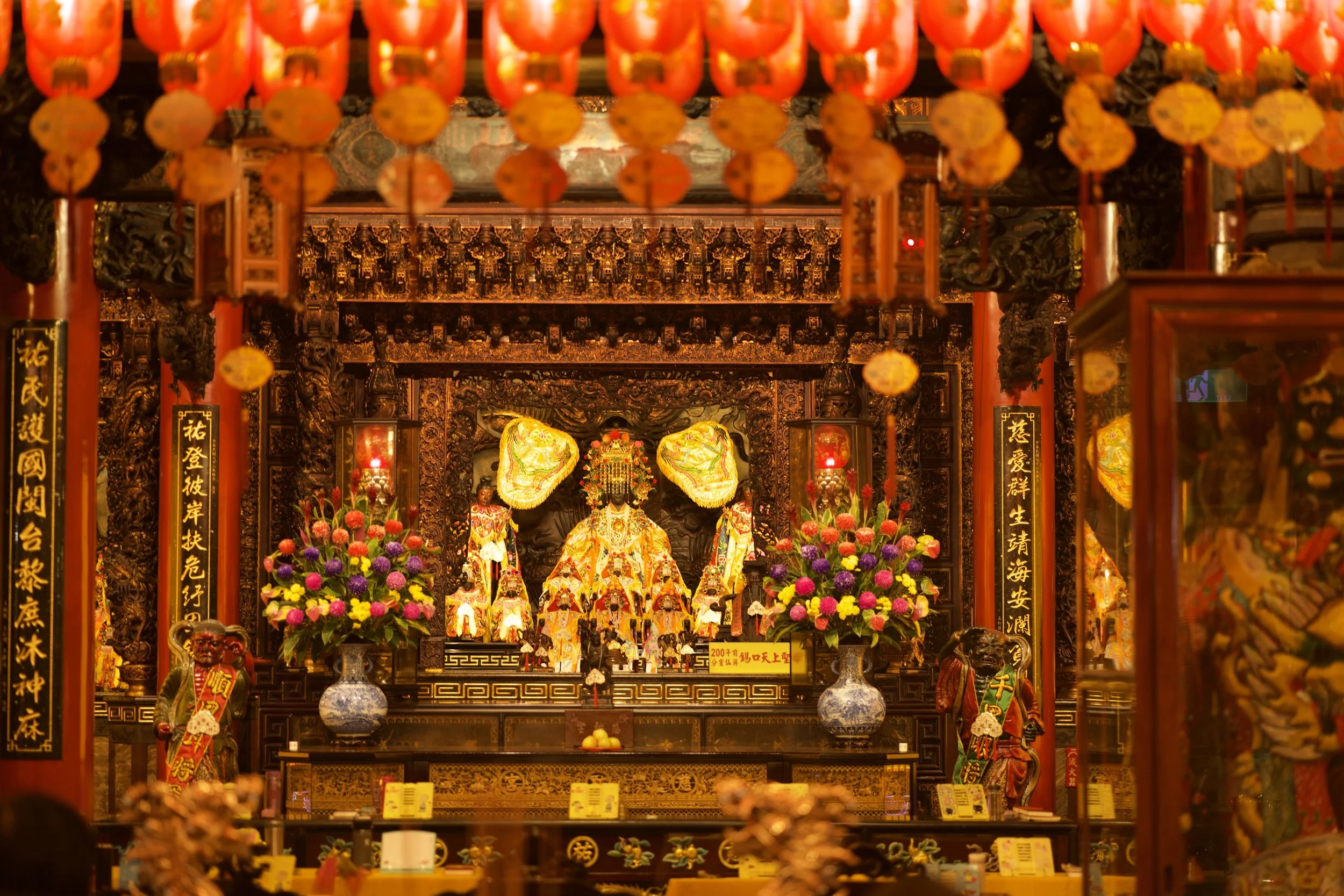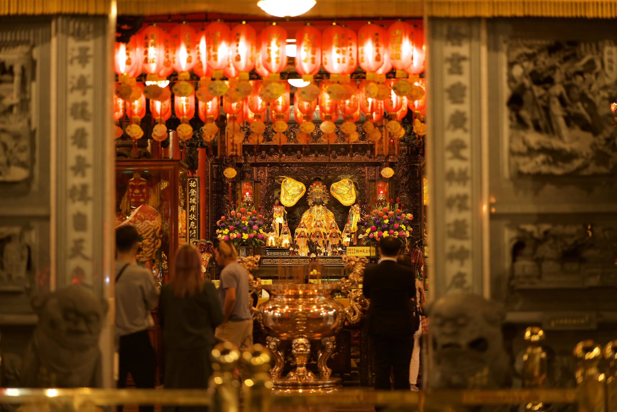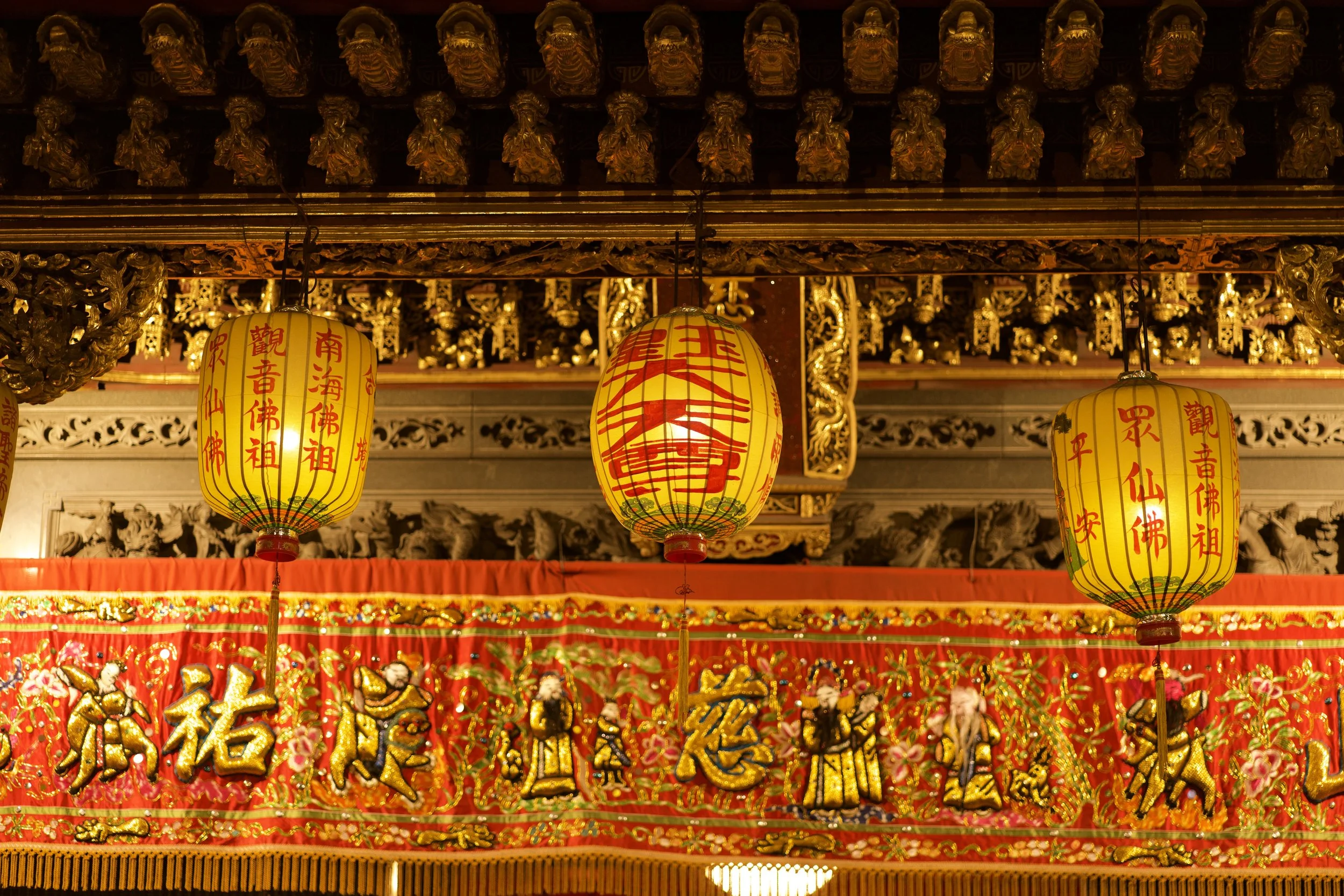 Ich starte starte mit dem Longshan Tempel, mit seinen reich verzierte Dächern, Drachenfiguren und diesen ganzen Laternen. Tatsächlich ist er einer der ältesten und bekanntesten Tempel Taiwans. Er wurde 1738 von chinesischen Einwanderern erbaut und ist vor allem der Göttin der Barmherzigkeit gewidmet. Der Longshan verbindet buddhistische, taoistische und volkstümliche Glaubensrichtungen und ist bis heute ein lebendiger Ort des Gebets, nicht nur eine Touristenattraktion.Und natürlich finde ich hier auch eine große Schale mit rot lackierten Holzstückchen, die wie kleine Bananen aussehen. Ich kenne diese Bananen, die eigentlich "Mondblöcke" heißen. Sie dienen den Gläubigen zur Befragung von Gottheiten, also der direkten Kommunikation mit einer spirituellen Instanz im Jenseits.