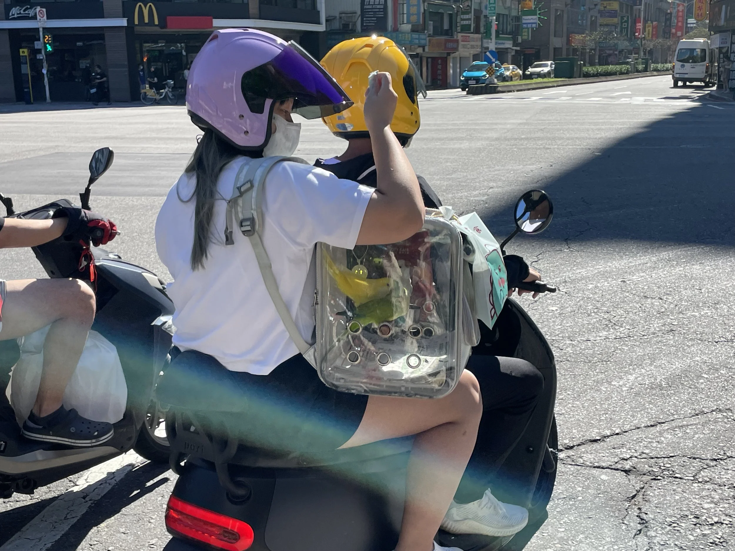 Als ich in der Stadt ankomme, sehe ich nicht nur einen Roller, der ein paar Sittiche in einer transparenten Box spazieren fährt, sondern auch eine steinalte Oma, die sich anschickt, eine mehrspurige Straße zu überqueren. Leider ist sie zu langsam, beziehungsweise ist ganz offensichtlich die Ampel zu schnell. Ich laufe der Oma entgegen, drehe auf Dreiviertel meines Wegs um und begleite sie im Schneckentempo, zurück in die Richtung, aus der ich gerade kam. Dabei signalisiere ich den Autos zu warten - und so schlendern wir beide schweigend im Schneckentempo über die Spuren der Straße. Kein Auto wagt es, die Haltelinie trotz grüner Ampel zu verlassen. Niemand hupt. Menschen zücken ihre Handys, filmen diese Situation, ich lächele verlegen, die Oma kriegt davon nicht viel mit, sie konzentriert sich auf die Koordination ihrer Füße. Ohne Worte oder Gesten trennt sich unser Weg auf dem Bürgersteig wieder. Ich bin ihr deshalb nicht böse, ein "Xie Xie" als Belohnung war nicht nötig. Schön war das!Und vielleicht konnte ich Teipei mit dieser kleinen Geste etwas zurückgeben, von dieser positiven Energie, die ich hier schon oft aufgesaugt habe und auch jetzt wieder aufsauge. Ich schwebe durch den Tag.