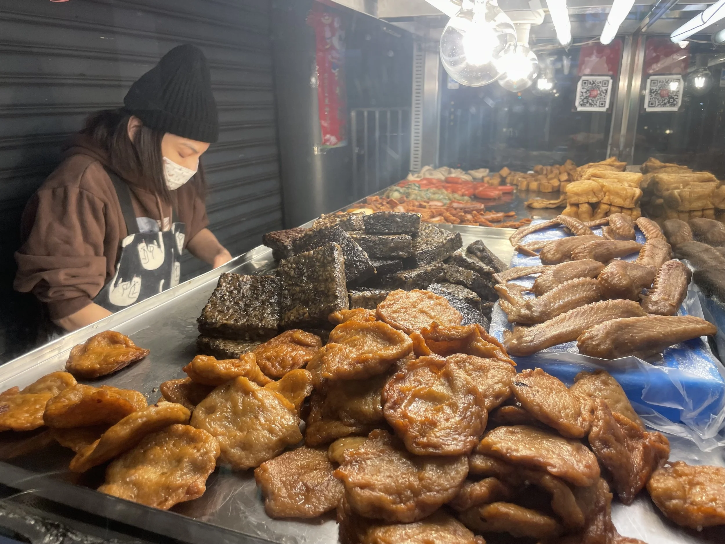 Jetzt sitze ich hier in dieser Garküche auf dem Dongdamen in Hualien und da passiert es: Ein Hauch Stinky Tofu weht zu mir rüber und mich schüttelt es. Es riecht so widerwärtig, dass dieser Gestank mir fast meine Froschsuppe verdorben hätte.