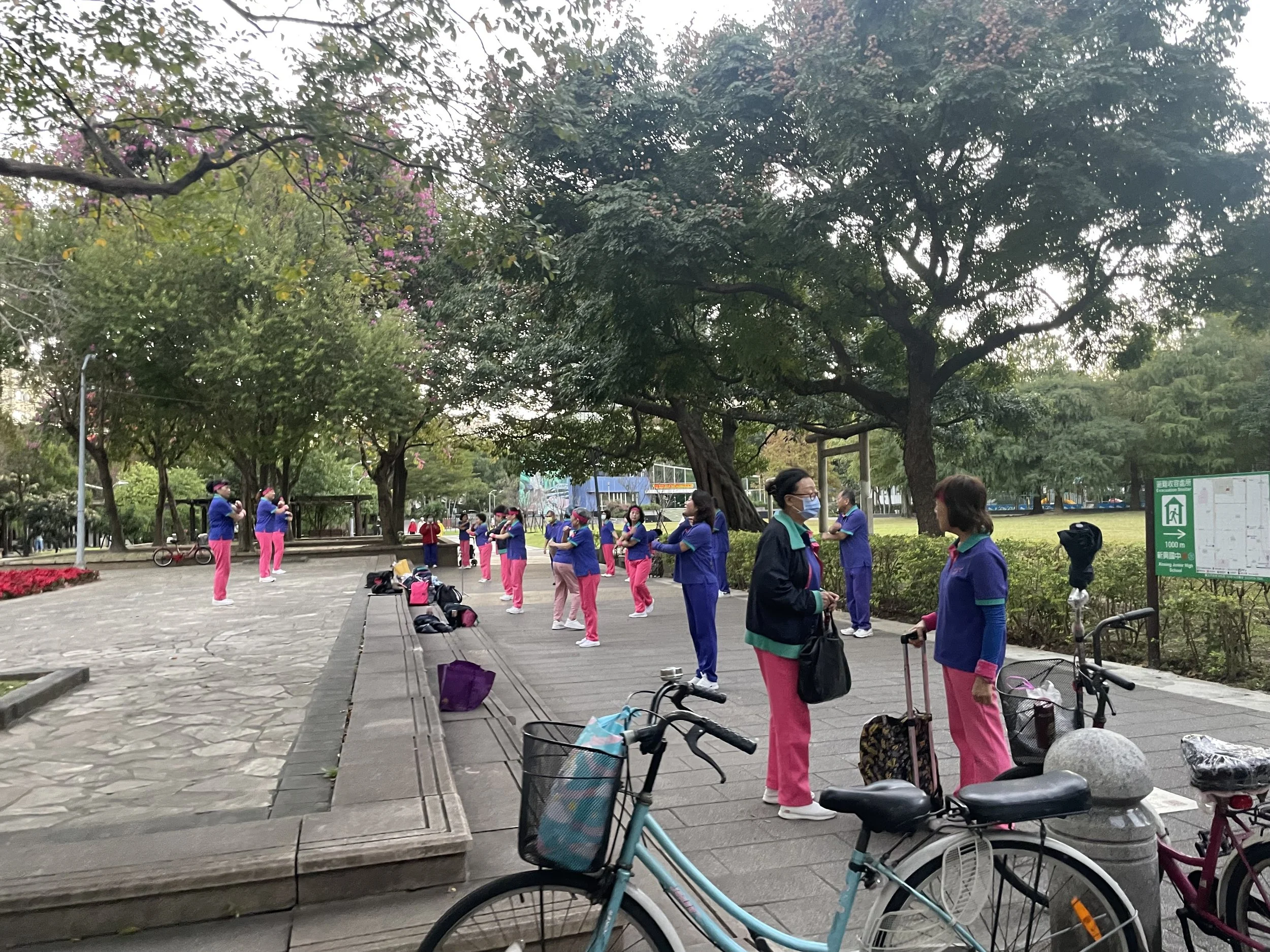 Irgendwie fühlt sich die Stadt für mich auch etwas europäisch an. Vielleicht liegt es an den Bäckereien mit frischen Brot-Produkten. (Frische Brot-Produkte herzustellen ist in Asien anscheinend eine Insel-Begabung.) Vielleicht liegt es aber auch daran, dass Taipei eine Fußgänger-freundliche Stadt ist. Auch das ist in Asien nicht unbedingt selbstverständlich. Ich beiße in ein glasiertes Schoko-Croissant und genieße diesen hervorragenden Bäckerei-Shop. Vielleicht ist es auch diese Cafe-Kultur, die mich an Europa erinnert, oder aber die vielen Parks in der Stadt, die zum Verweilen einladen. In den Morgenstunden sind die Parks auch Versammlungsort für die Rentner-Gruppen, die hier Tai Chi, Qigong oder andere Leibesübungen machen.