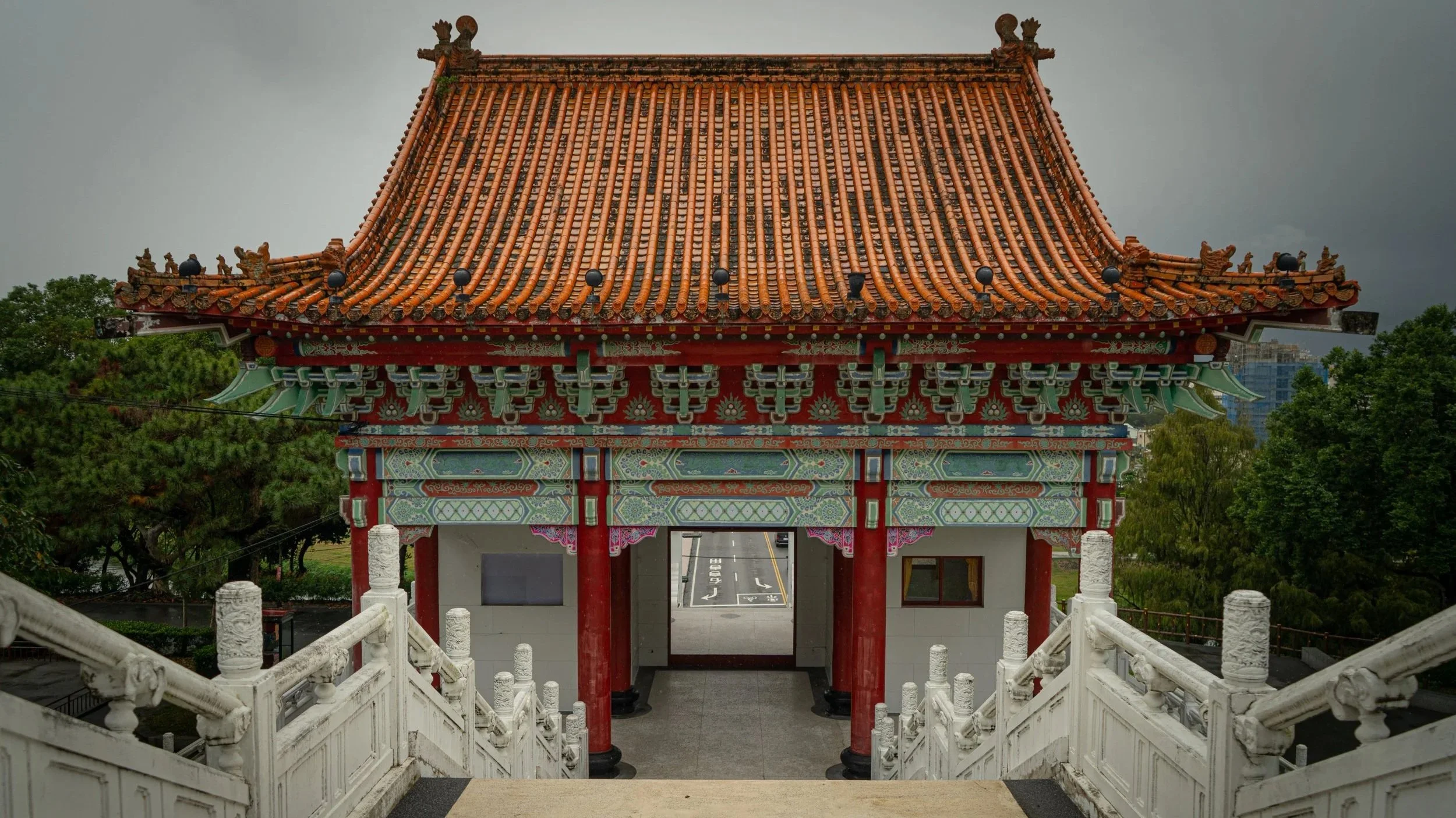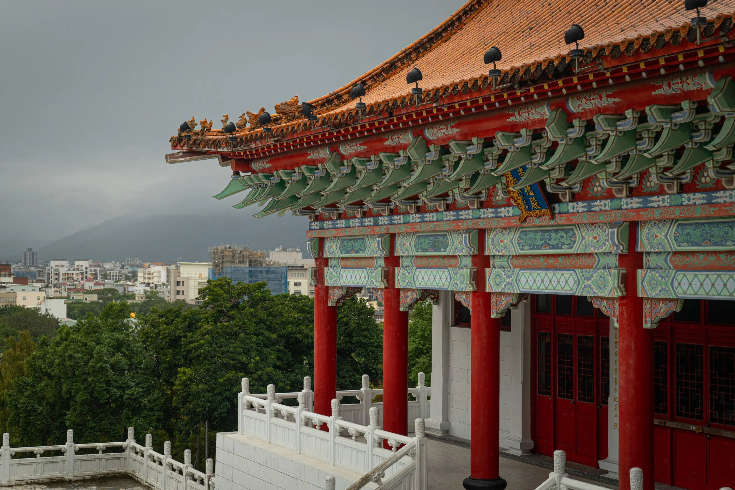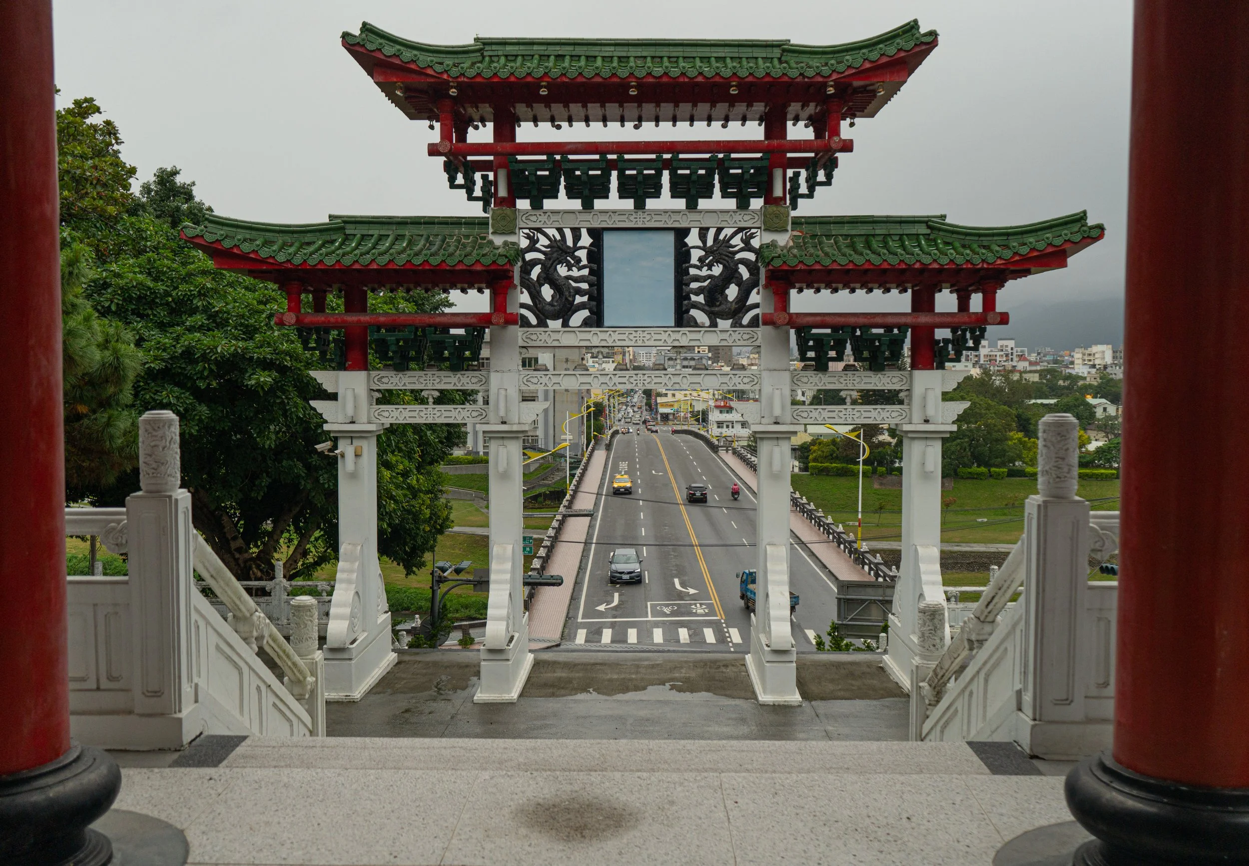 Das Stadtbild umfasst glücklicherweise nicht nur Marmor, sondern auch andere Highlights, den Hualien Martyrs' Shrine beispielsweise. Er ist kein Tempel im religiösen Sinn, sondern ein Märtyrer-Schrein, gewidmet gefallenen Soldaten und Nationalhelden Taiwans.Aber trotz Dauerregen schaffe ich es nach ein paar entspannten Tagen mit ein bisschen Sightseeing schließlich unbeschadet aus der Stadt heraus, nehme den Zug nach Xingcheng, bunkere meinen Hauptrucksack unkompliziert in einem großen Schließfach am Bahnhof, und nehme die letzten paar Meter den Bus in die Taroko-Schlucht. Mal schauen wie mir der Marmor hier, sozusagen in freier Wildbahn, gefällt. Immerhin regnet es heute auch nicht.