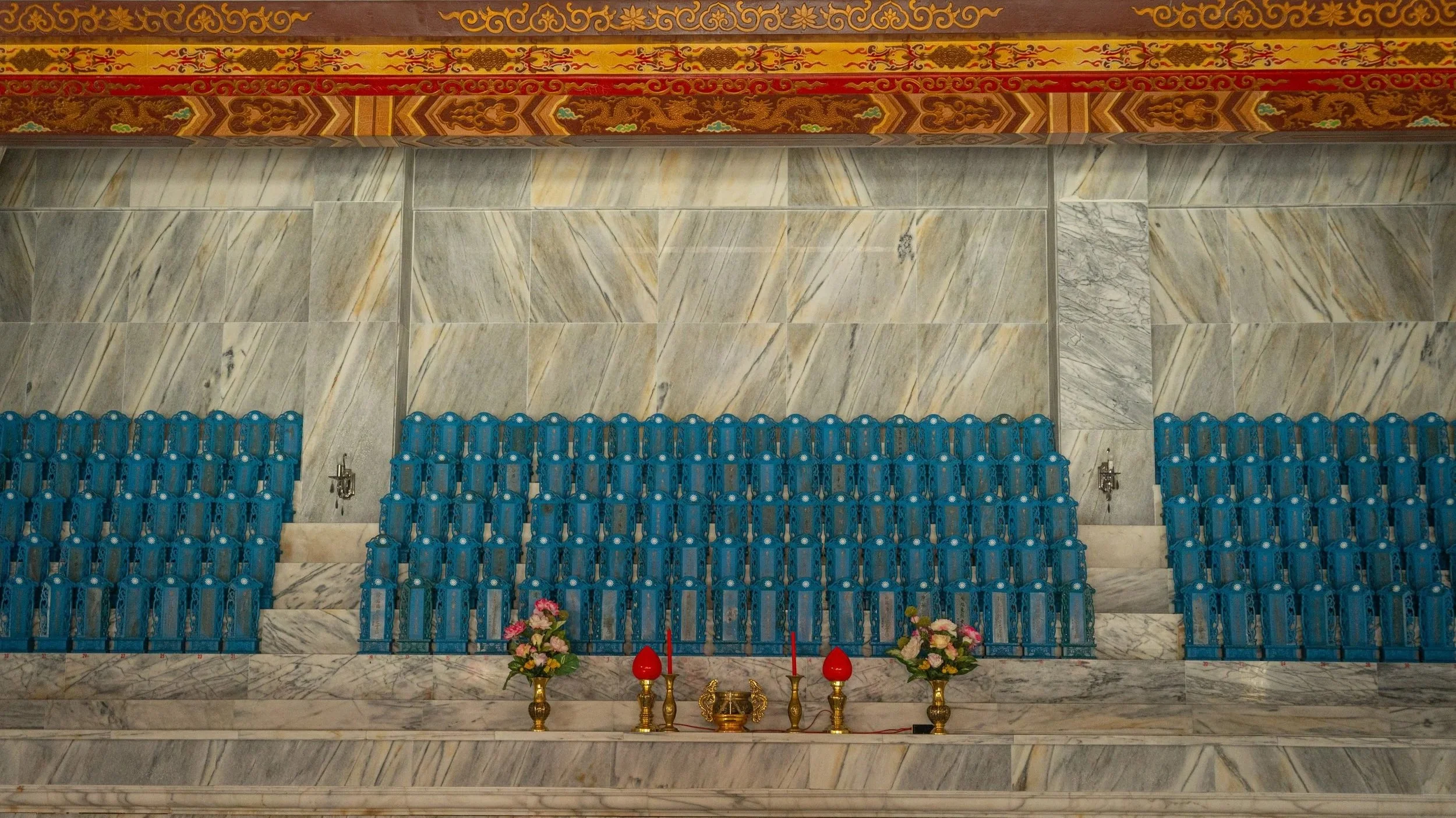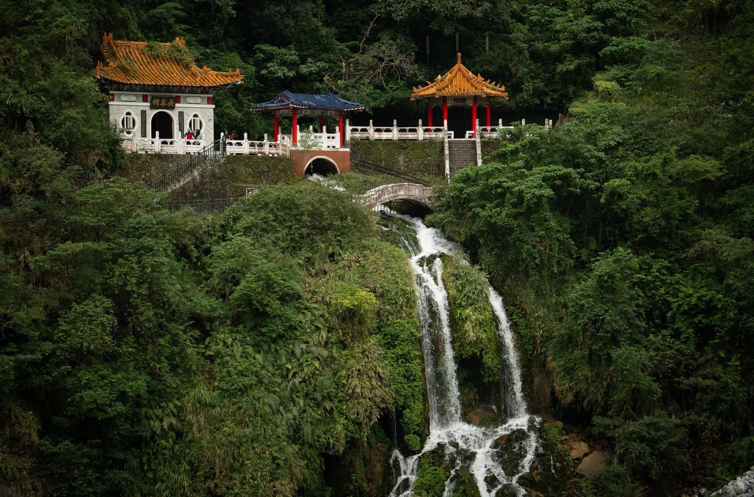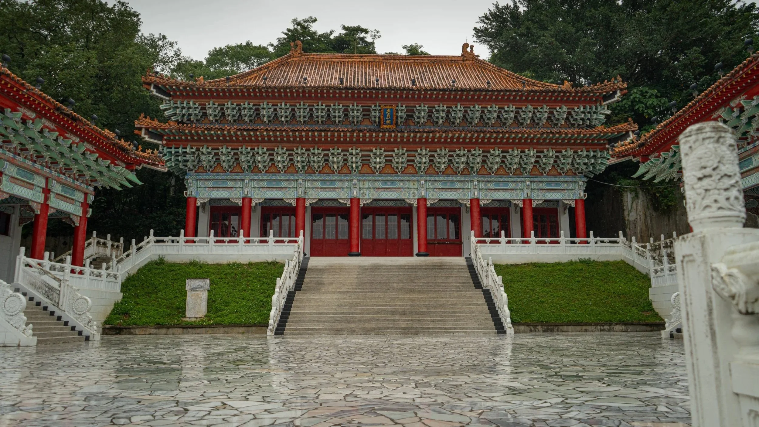 Das Stadtbild umfasst glücklicherweise nicht nur Marmor, sondern auch andere Highlights, den Hualien Martyrs' Shrine beispielsweise. Er ist kein Tempel im religiösen Sinn, sondern ein Märtyrer-Schrein, gewidmet gefallenen Soldaten und Nationalhelden Taiwans.Aber trotz Dauerregen schaffe ich es nach ein paar entspannten Tagen mit ein bisschen Sightseeing schließlich unbeschadet aus der Stadt heraus, nehme den Zug nach Xingcheng, bunkere meinen Hauptrucksack unkompliziert in einem großen Schließfach am Bahnhof, und nehme die letzten paar Meter den Bus in die Taroko-Schlucht. Mal schauen wie mir der Marmor hier, sozusagen in freier Wildbahn, gefällt. Immerhin regnet es heute auch nicht.