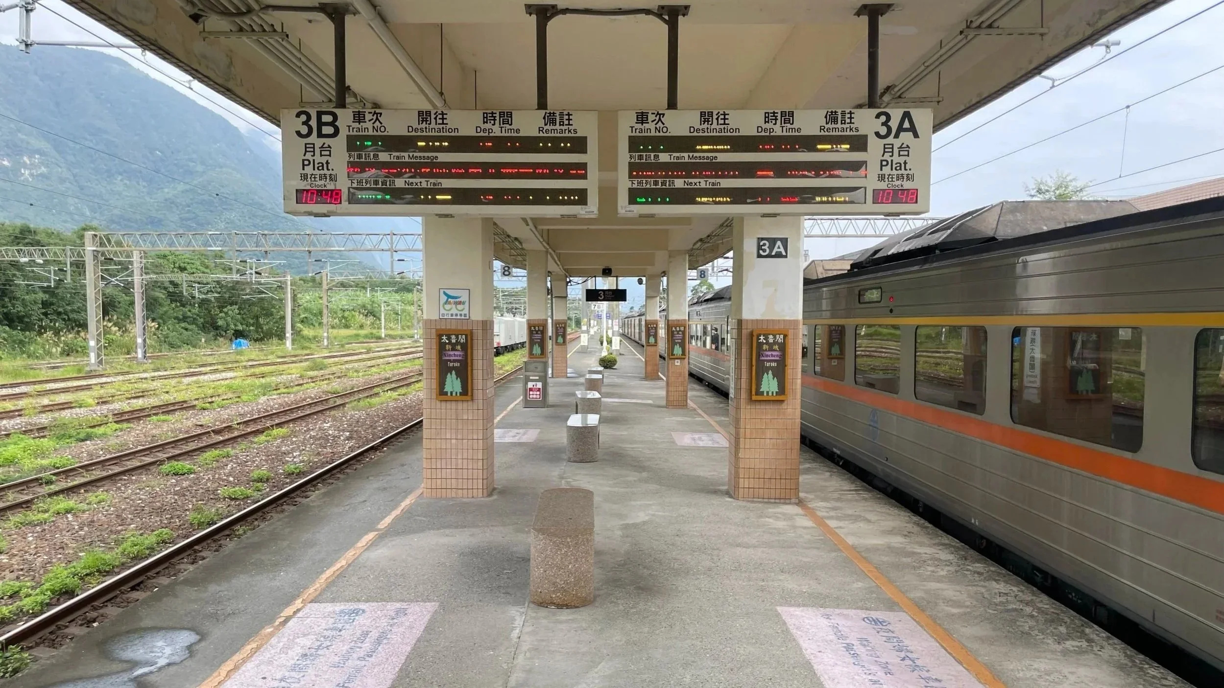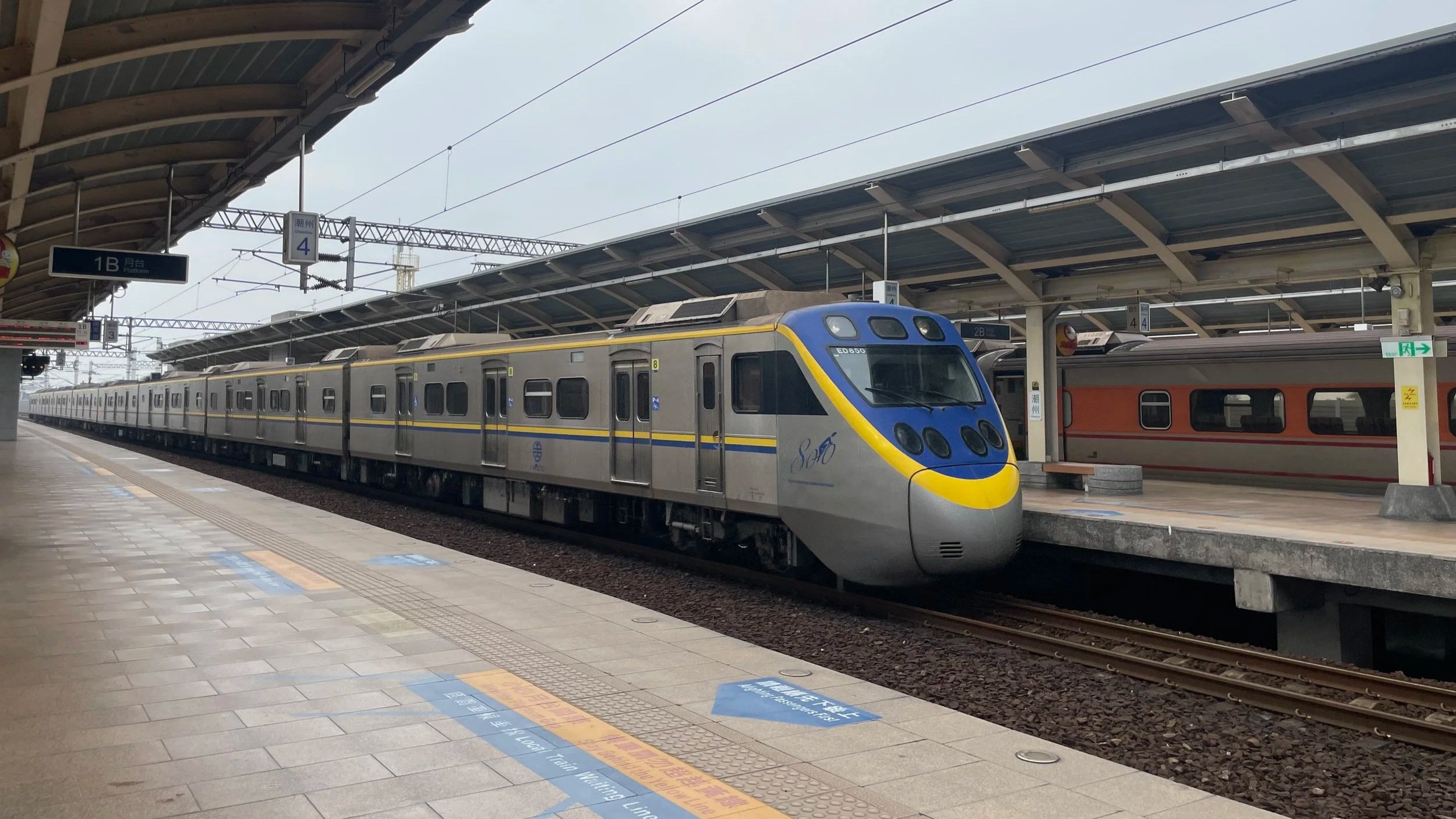 Wie alles in Taiwan ist auch das Zugfahren trotz chinesischen Schriftzeichen super easy. Ich bin viel zu früh am Bahnhof und kann sogar ohne Aufpreis mein online gebuchtes Zugticket mit Zugbindung umtauschen. Ich muss kurz an die Deutsche Bahn denken. Wie so oft, wenn ich mit dem Zug in anderen Ländern unterwegs bin. Auf Schienen geht es von Chaozhou erst noch etwas weiter südlich an der von der Industrie geprägten Westküste entlang, dann aber in einem Bogen in östliche Richtung und durch den Ausläufer der zentralen Bergkette bis hin zur dünner besiedelten Ostküste und von hier dann in nördliche Richtung.Fähre auf’s taiwanesische Festland, Taxi zum Bahnhof, mit dem Zug nach Norden.