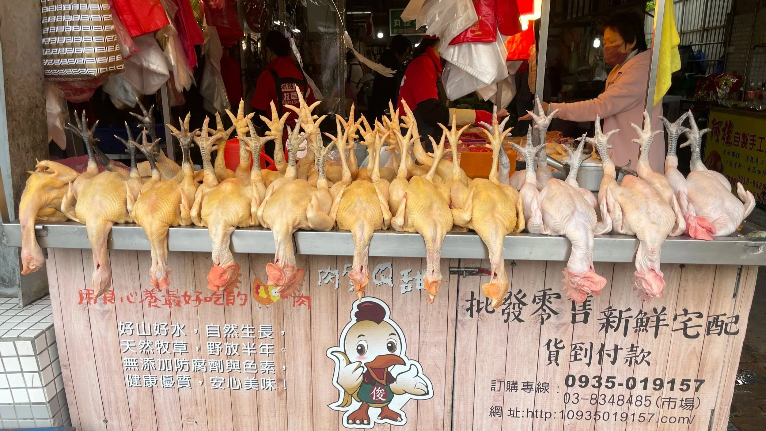 Nachdem ich mehrere Regentage halb schlitternd halb staksend die Stadt erkundet habe, bin ich mir zudem sicher, dass bei der Stadtplanung die orthopädische Innung von Hualien einige Lobbyisten platziert haben muss. Anders ist mir das Stadtbild nicht zu erklären.Schwarz, gelb oder weiß? Wie sollen die Hühnchenfüße heute sein?