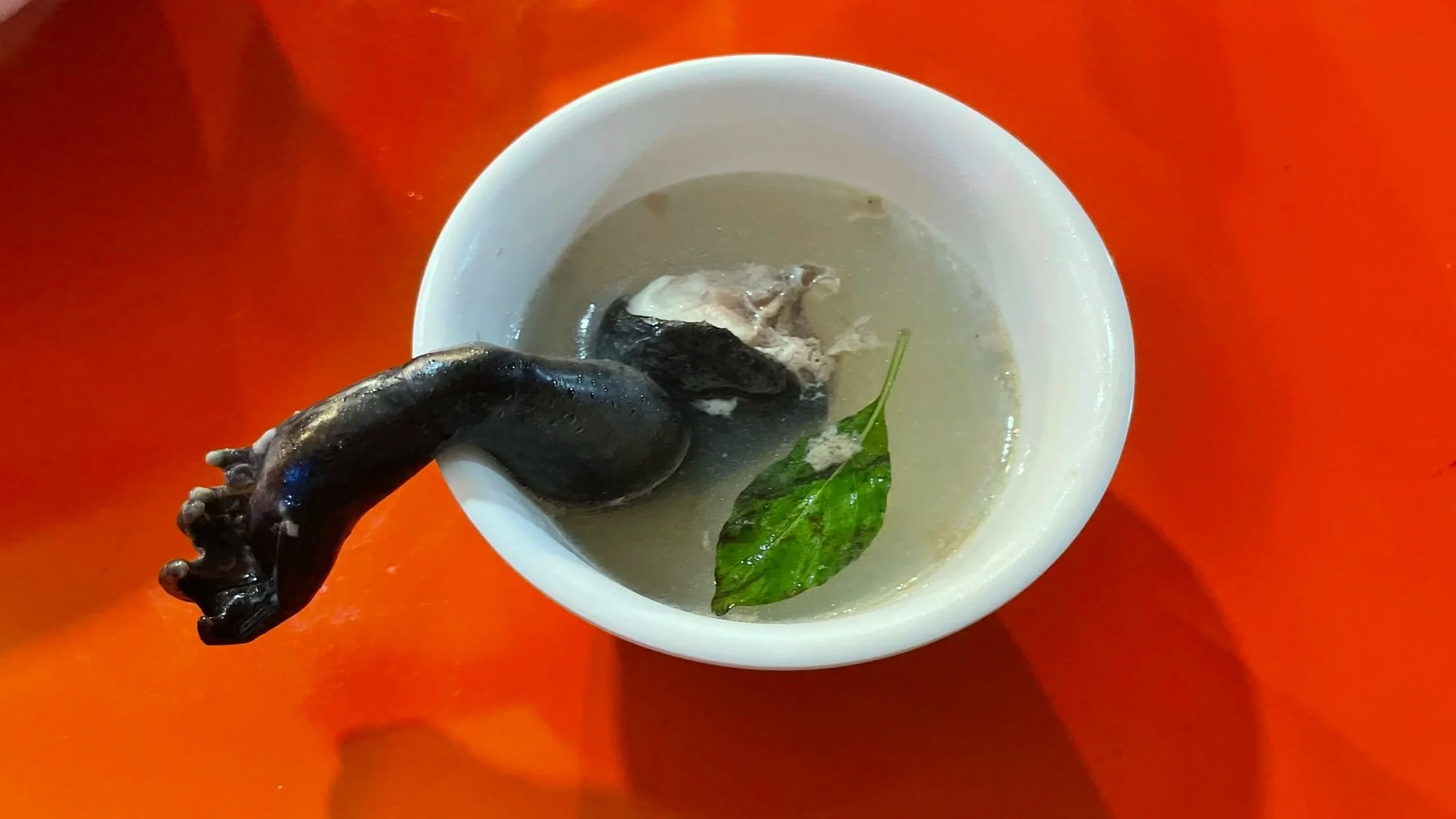 Aber zum Glück ist die stinkige Böe schnell vorbei und ich kann mich auf diese exzellente Suppe aus der Garküche konzentrieren.Vorzügliche und traditionelle taiwanesische Ochsenfroschsuppe. Guten!